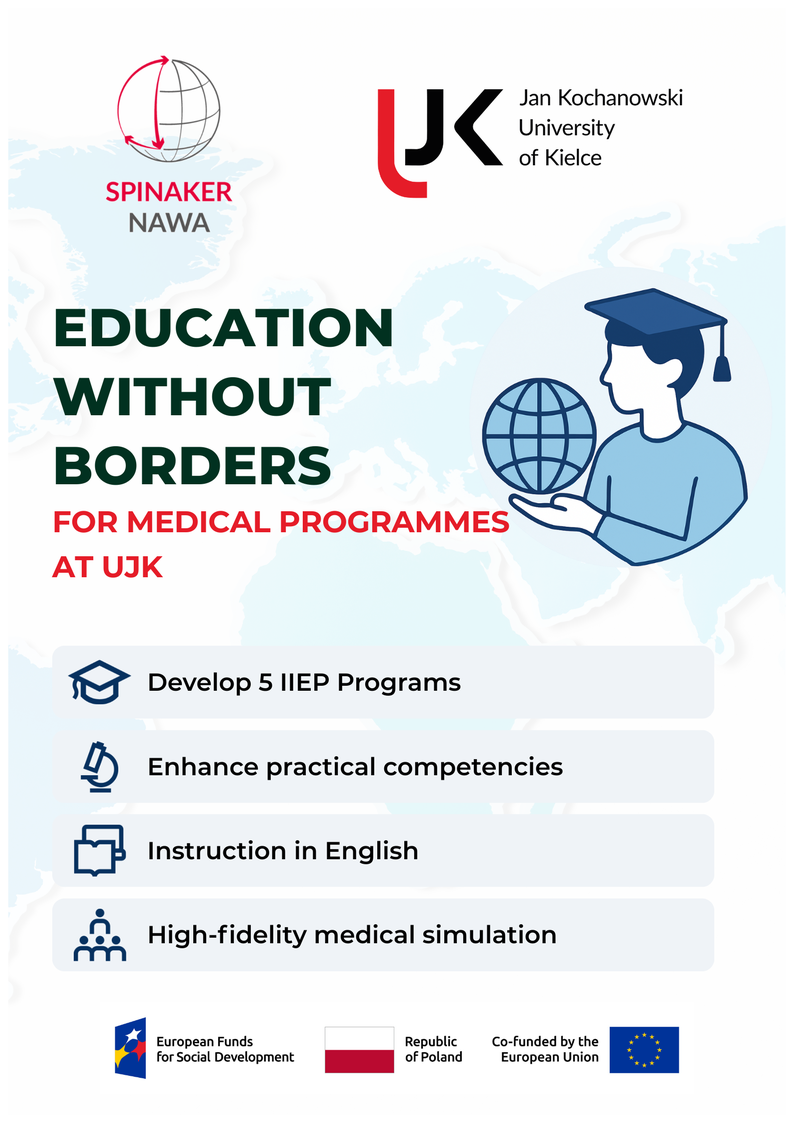 The Collegium Medicum of Jan Kochanowski University of Kielce is pleased to announce that the project “Education Without Borders for Medical Fields at UJK” has been actively implemented since June 2025 under the NAWA SPINAKER program. The development of the Intensive International Educational Programs (IIEPs) is now in its final stages, and we will soon be ready to open recruitment for international participants.